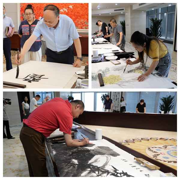 啟動儀式結(jié)束后,在現(xiàn)場舉行了筆會。20余名美術(shù)家現(xiàn)場揮毫潑墨,精心創(chuàng)作了多幅精美作品。